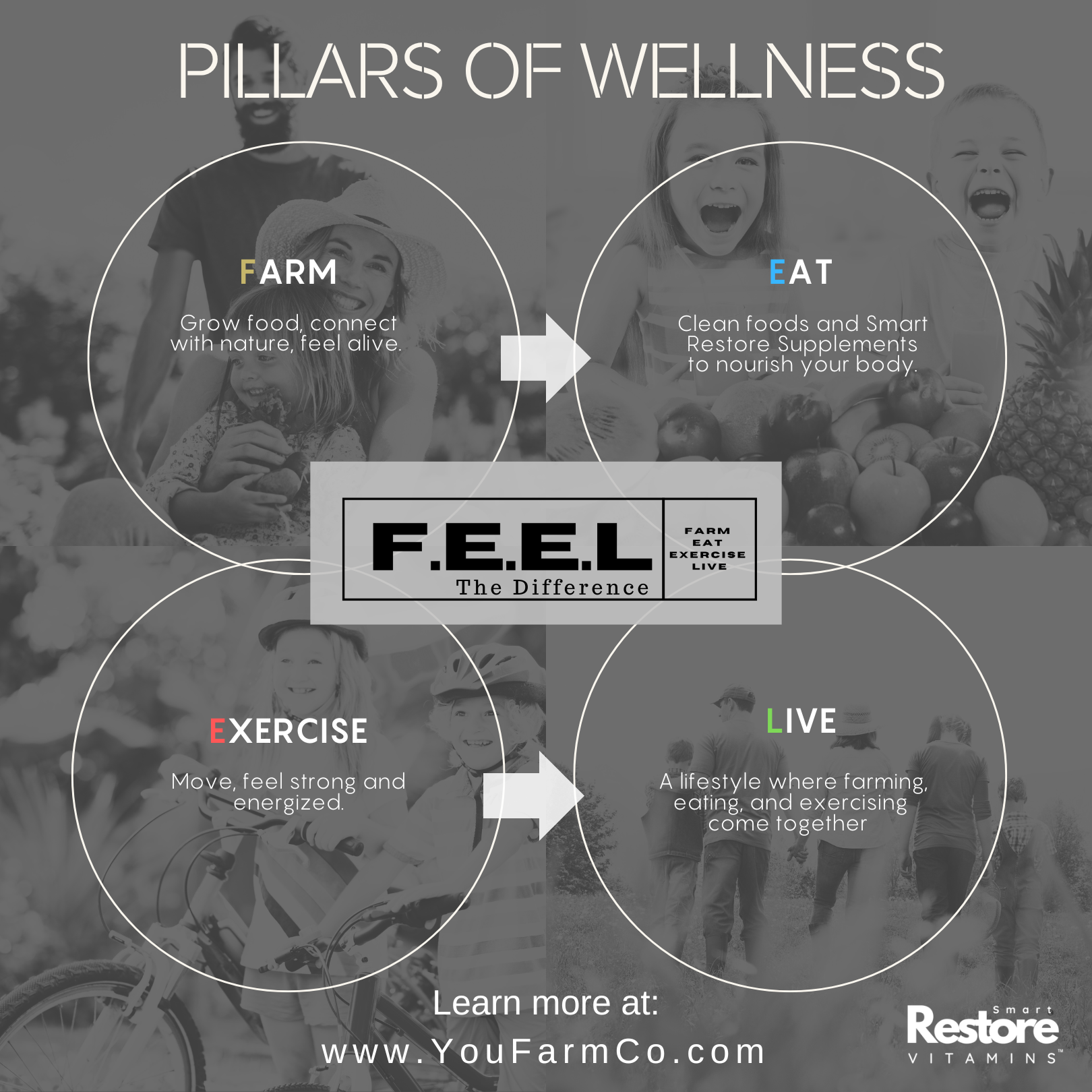Smart Restore Vitamins are part of our FEEL campaign Farm - Eat - Exercise - Live. For more information on our parent company You Farm Co and to learn more about FEEL. Click to visit You Farm online